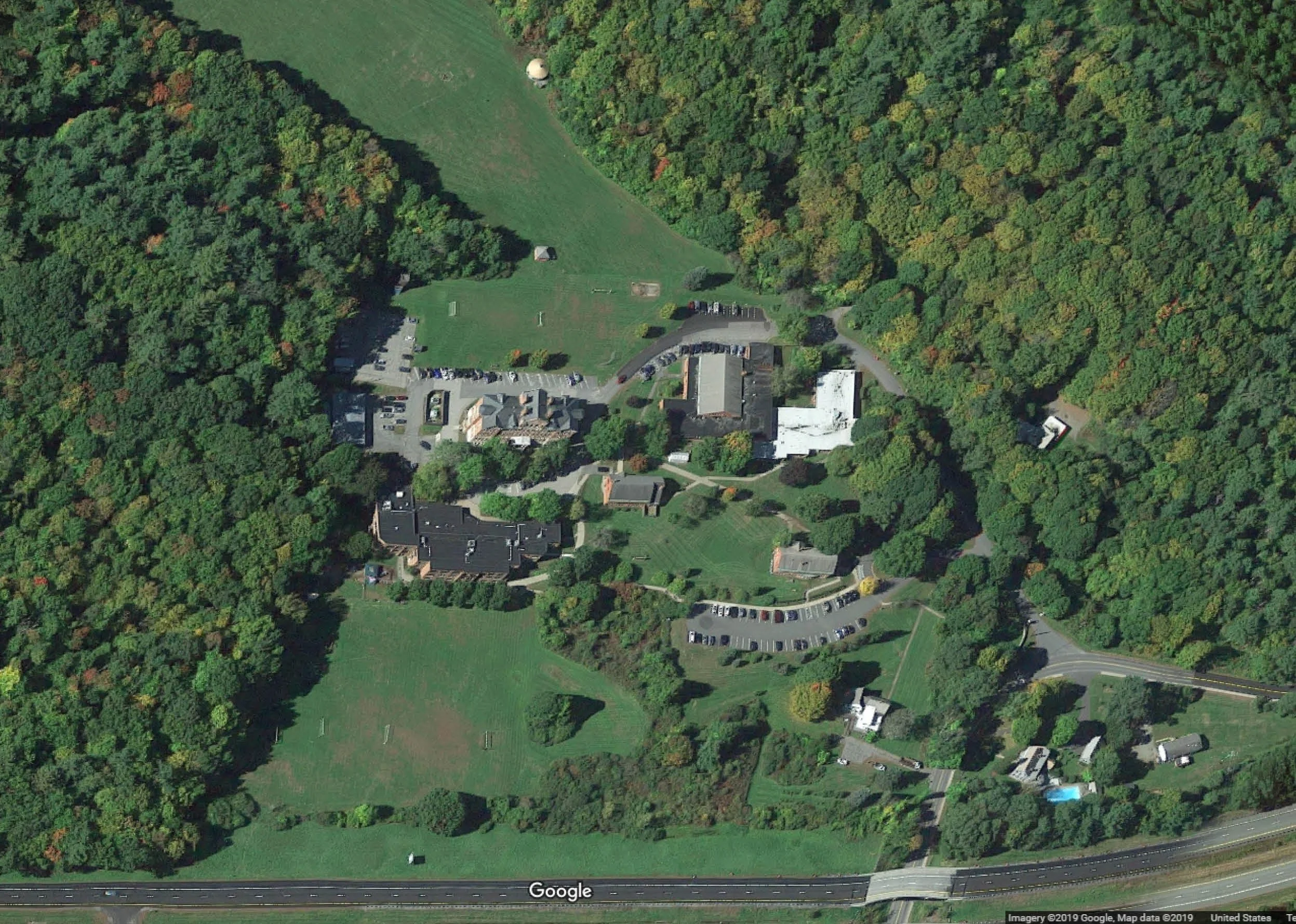 Ariel view of the Winston-Prouty Campus and surrounding woods